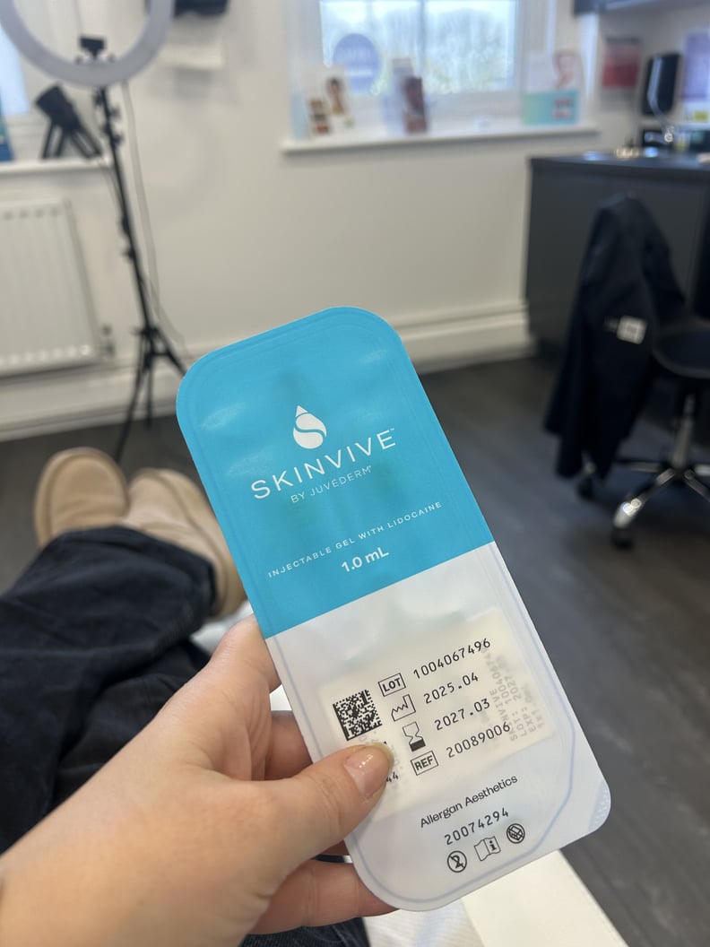 I had the Skinvive treatment on Time Clinicprices start from £350 and are determined by the individual clinic and doctor and depend on location. For more information about Skinvive and to find your local clinic visit skinvive.co.uk.